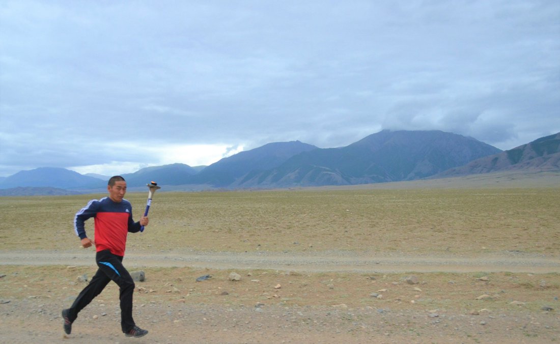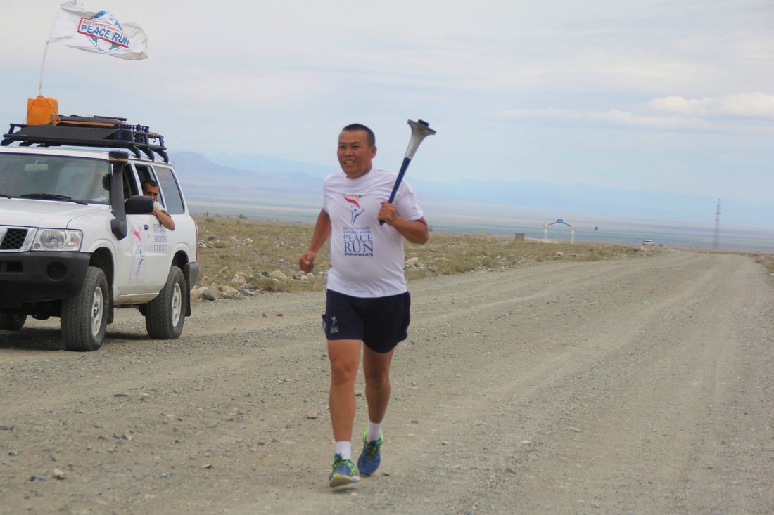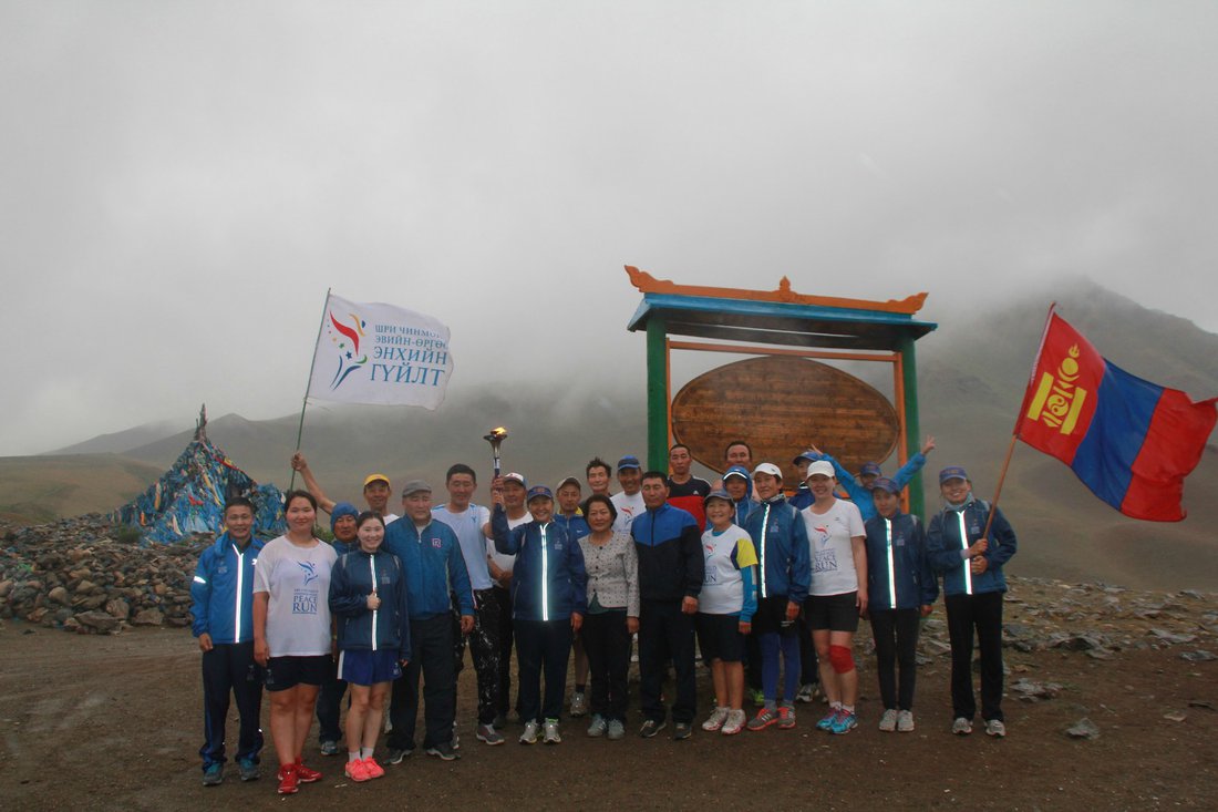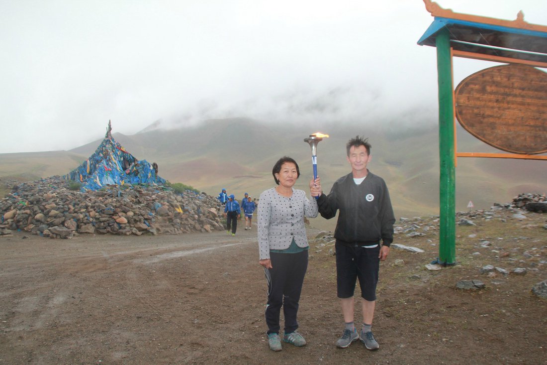 Mayor L.Buyanjargal of Turgen sum accepts the peace torch.