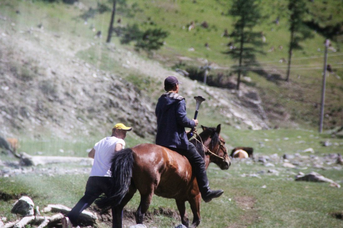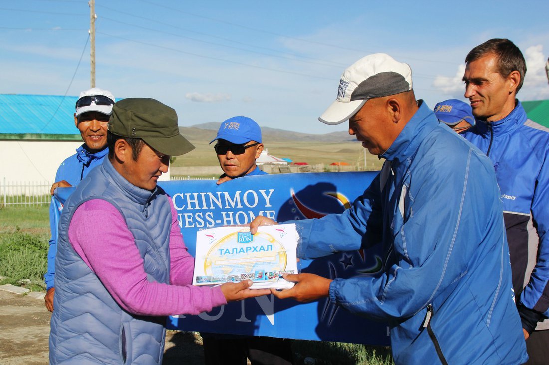 Увс аймгийн Цагаанхайрхан сумын засаг дарга Б.Төөрүүл Энхийн бамбараа үдэн гаргаж буй нь...