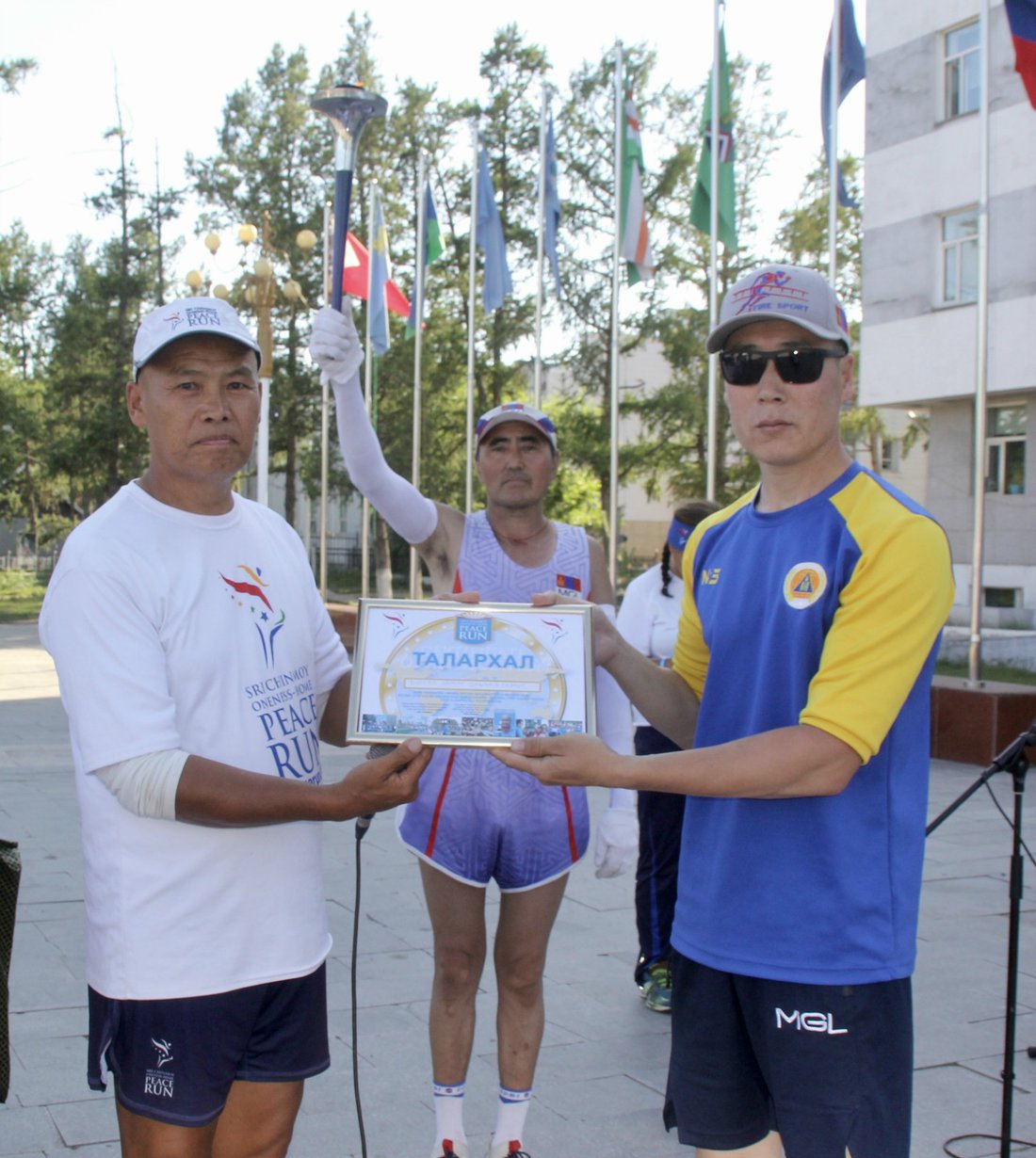 Эвийн-Өргөө Энхийн Гүйлтийн Багаас Булган аймгийн Засаг Даргын Орлогч Д.Жаргалсайханд "Энхийн Бамбартан" медаль гардууллаа.