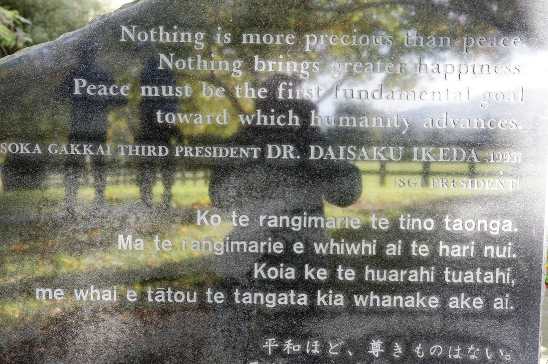 The Peace Tree is adjacent to the Ikeda Peace Garden where the words of peace visionaries are carved into rocks.