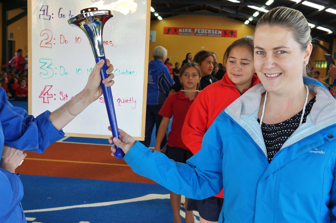 Pania of Rotorua Top 10 Holiday Park holds the torch. Thank-you so much for hosting some of our team. It is much appreciated!