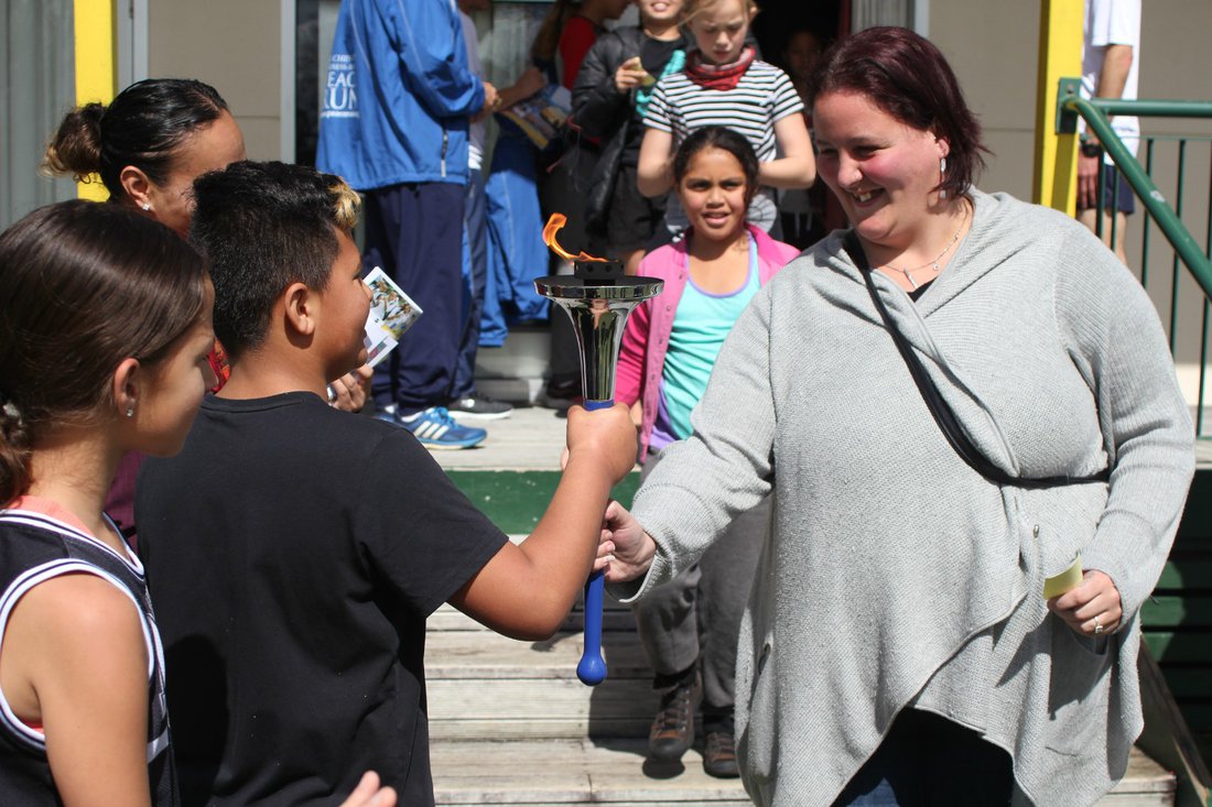 Kawerau Councillor Sela Kingi received a Torch-Bearer Award from Sean Abbott of the Peace Run team for her dedicated service to the Kawerau community.