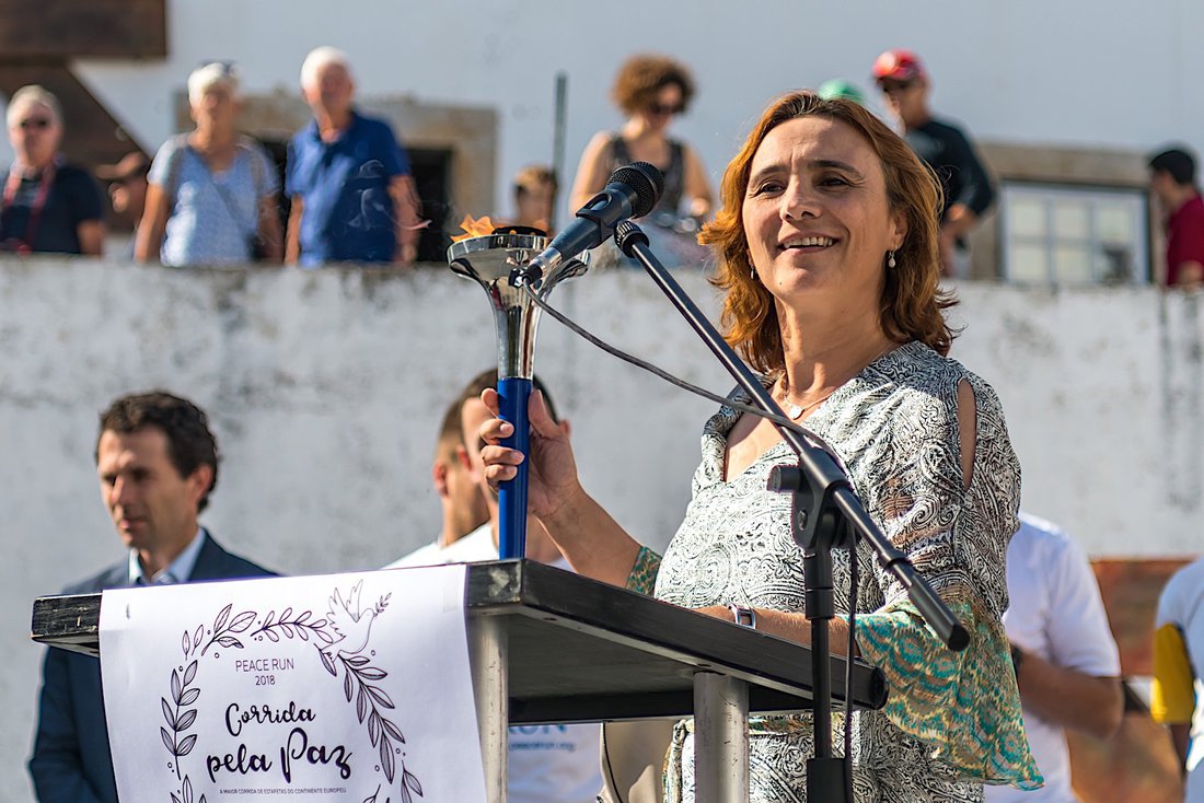 The Municipal Councilor of Óbidos Ana Reis receives the Peace Run Certificate.