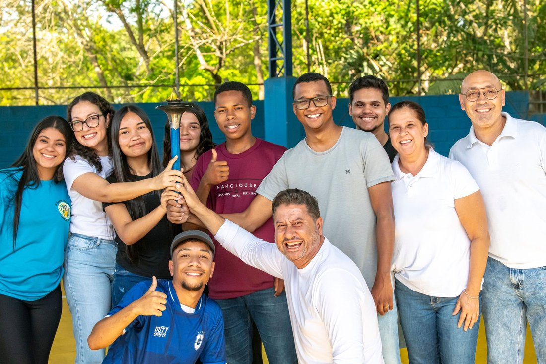 A Tocha da Paz foi entregue com emoção à Vice-Diretora Rosinara Muniz e ao Coordenador Amauri Pontes. A Diretora Jackeline Camargo segurava orgulhosamente o Certificado de Apreciação da Peace Run, simbolizando o compromisso de toda a escola — professores, colaboradores e alunos — com a construção da Paz.