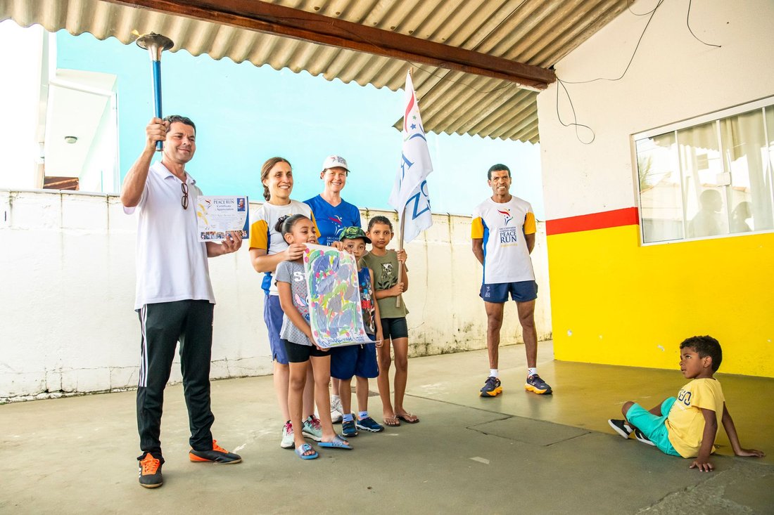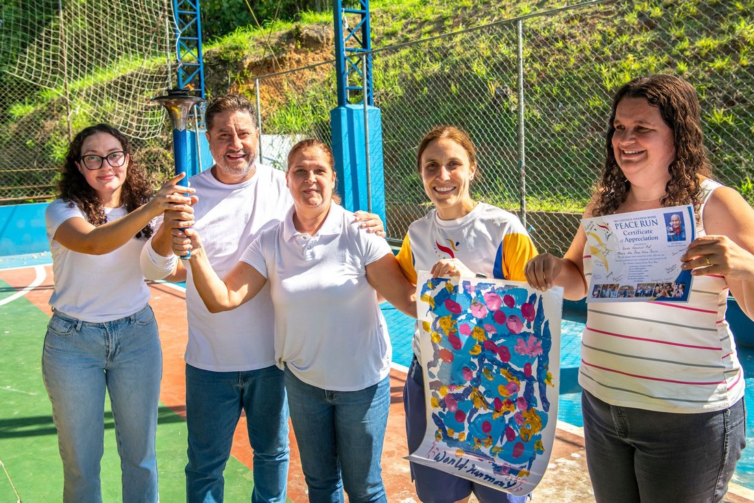 The Peace Torch was handed over with emotion to Vice-Principal Rosinara Muniz and Coordinator Amauri Pontes. Principal Jackeline Camargo proudly held the Peace Run Certificate of Appreciation, symbolizing the school's commitment — teachers, staff, and students — to building peace.