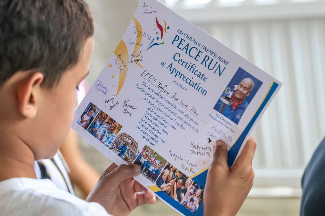 The school’s Principal, Cristian Wagner, proudly received the Peace Torch and the Peace Run Certificate of Appreciation.