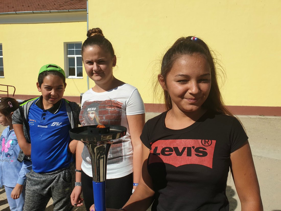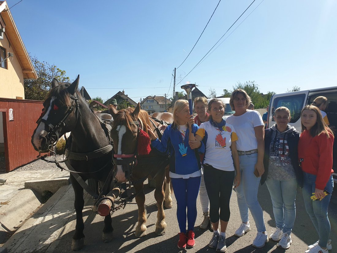 The principal of the school, Mrs Alina Bugnar, receives the torch...