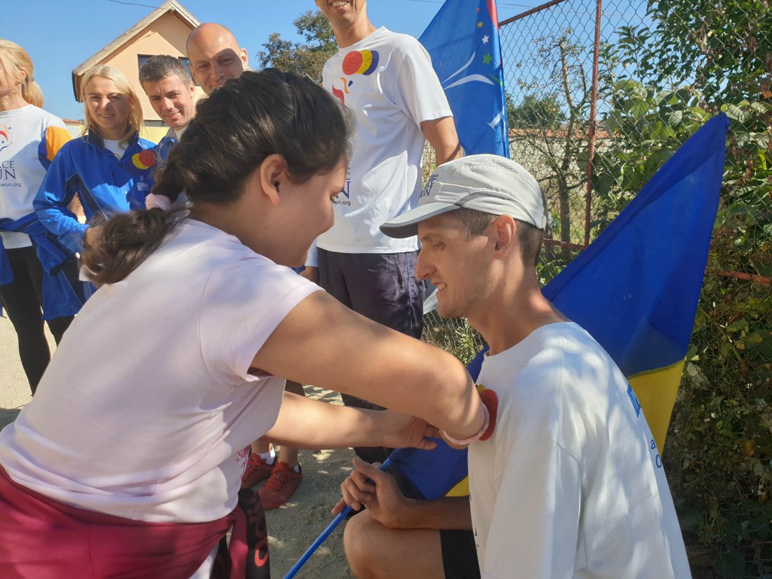 Copiii ne-au pregătit un cadou purtând cuvintele fondatorului alergării, Sri Chinmoy, scrise pe culoriile tricolorului românesc.