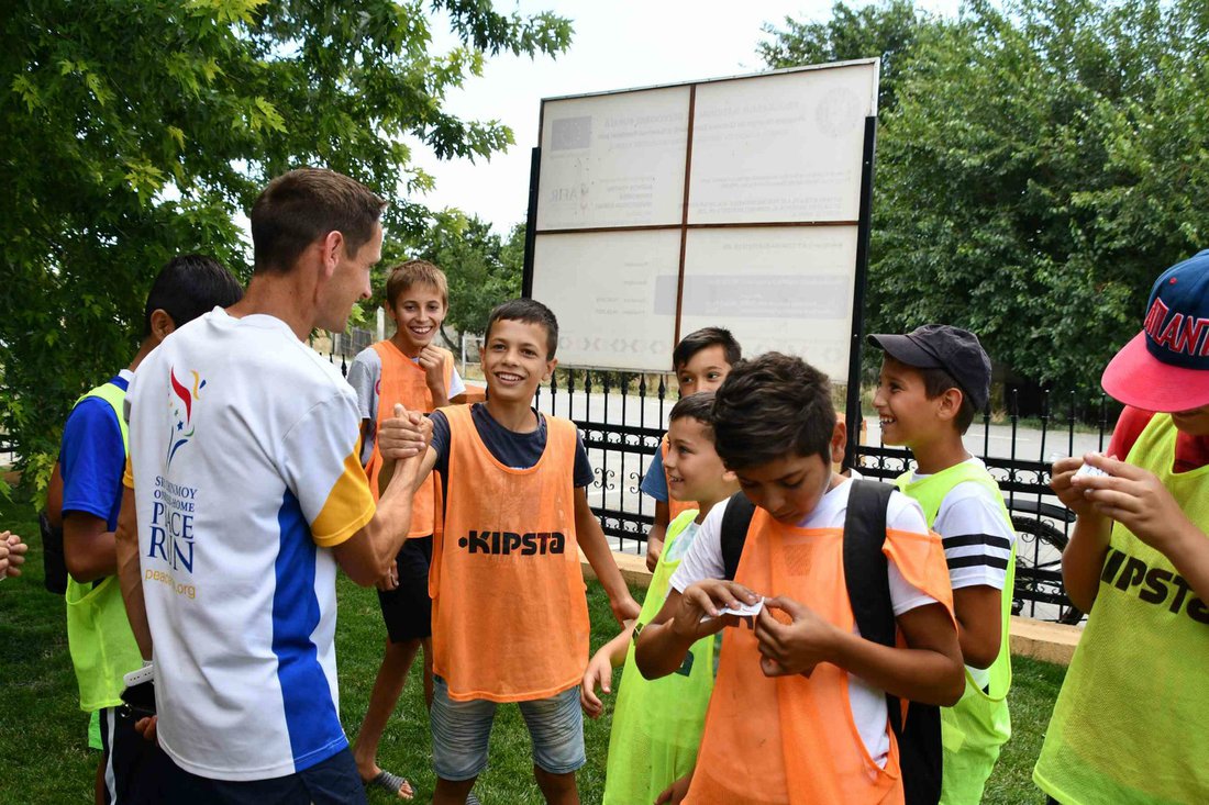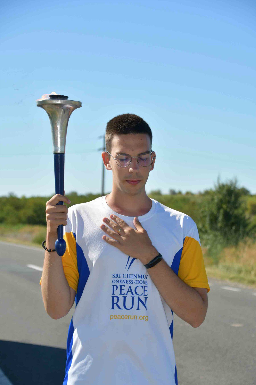 And we give her a gift of an artwork by Peace Run founder Sri Chinmoy.