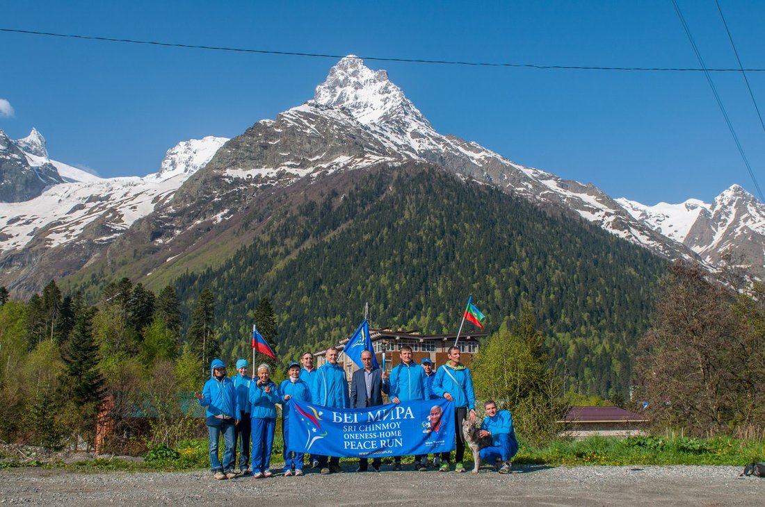 Мэр Домбая Абайханов Ерол Назимович с командой Бега мира