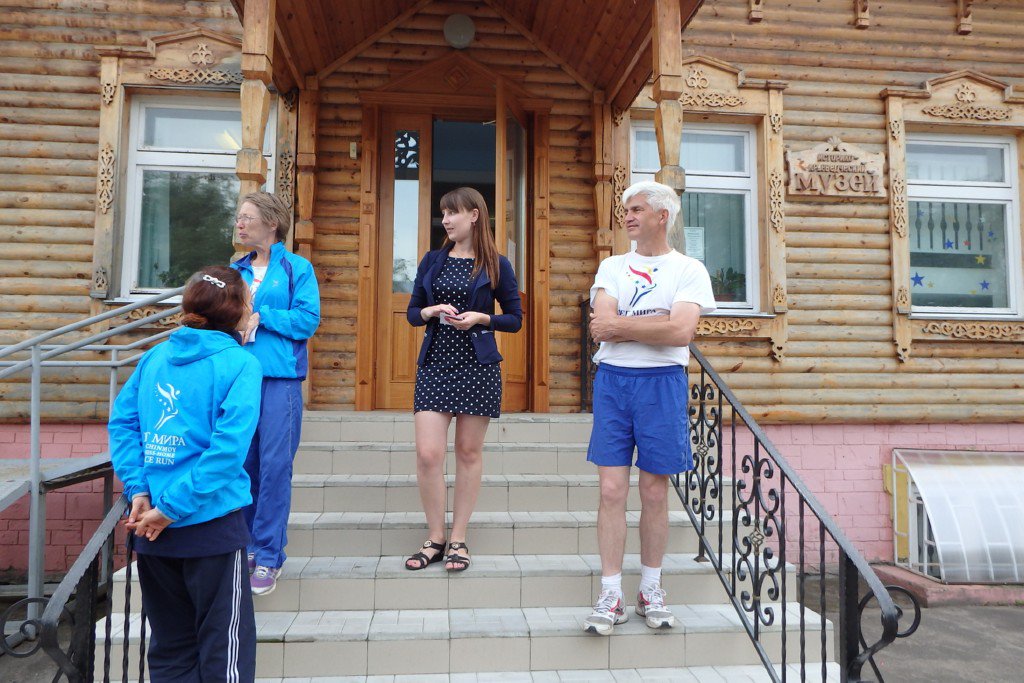 Verblyuzhye village. Head of youth department Nikolay Klimyshev and the runner Milena ran with the team throughout the village.