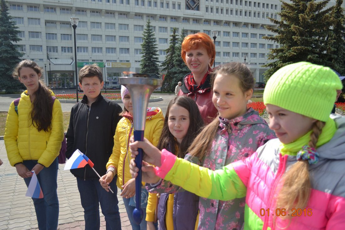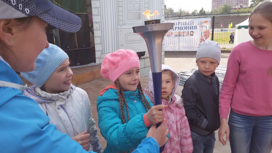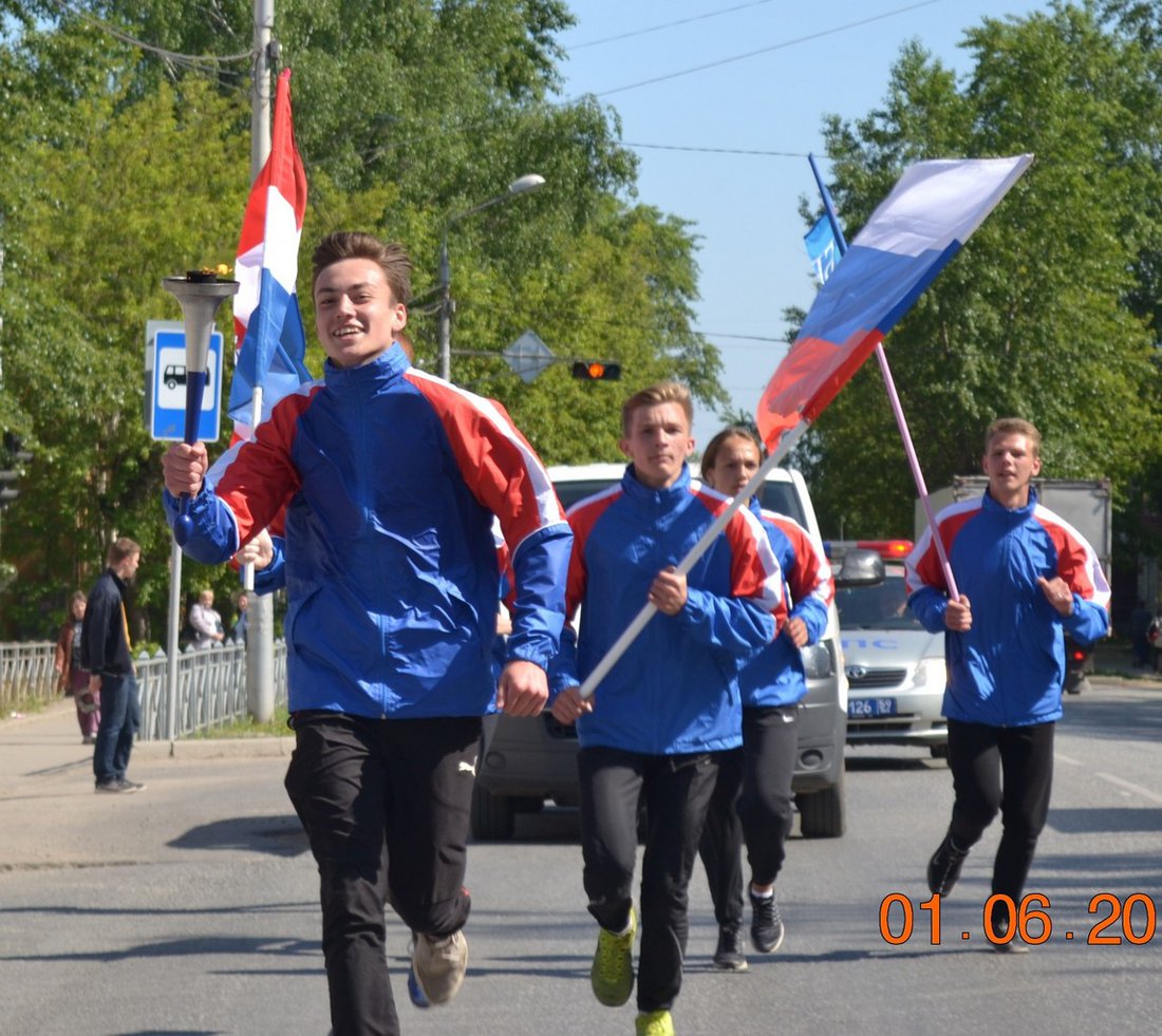 Holding the torch are Alexandr Gafiyev, the head of sports department of Krasnokamsky region, Larisa Voronaya, head of sports department of Krasnokamsky settlement, Yury Trukhin, vice-head of Krasnokamsky regional administration