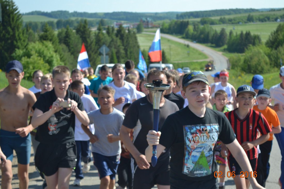 Head of sports and youth department Pavel Pirozhkov is holding the torch