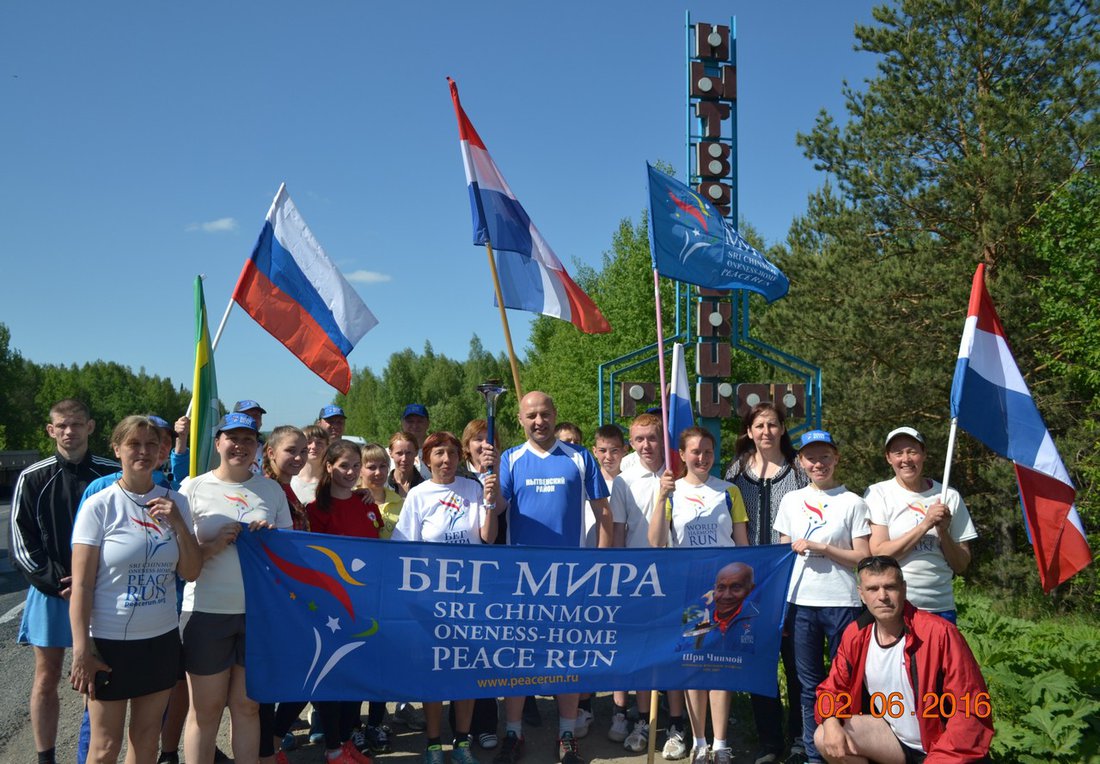 First vice-head of Nytva regional administration Alexandr Bezmaternykh is welcoming the relay