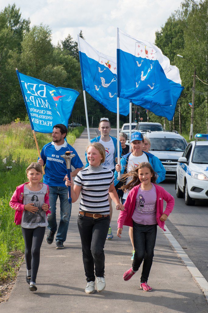С факелом Родивилов Игорь Леонидович, начальник отдела управления по делам молодежи и политики. Слева – Белова Ирина Александровна, начальник отдела развития физической культуры и массового спорта администрации Дмитровского муниципального района.
