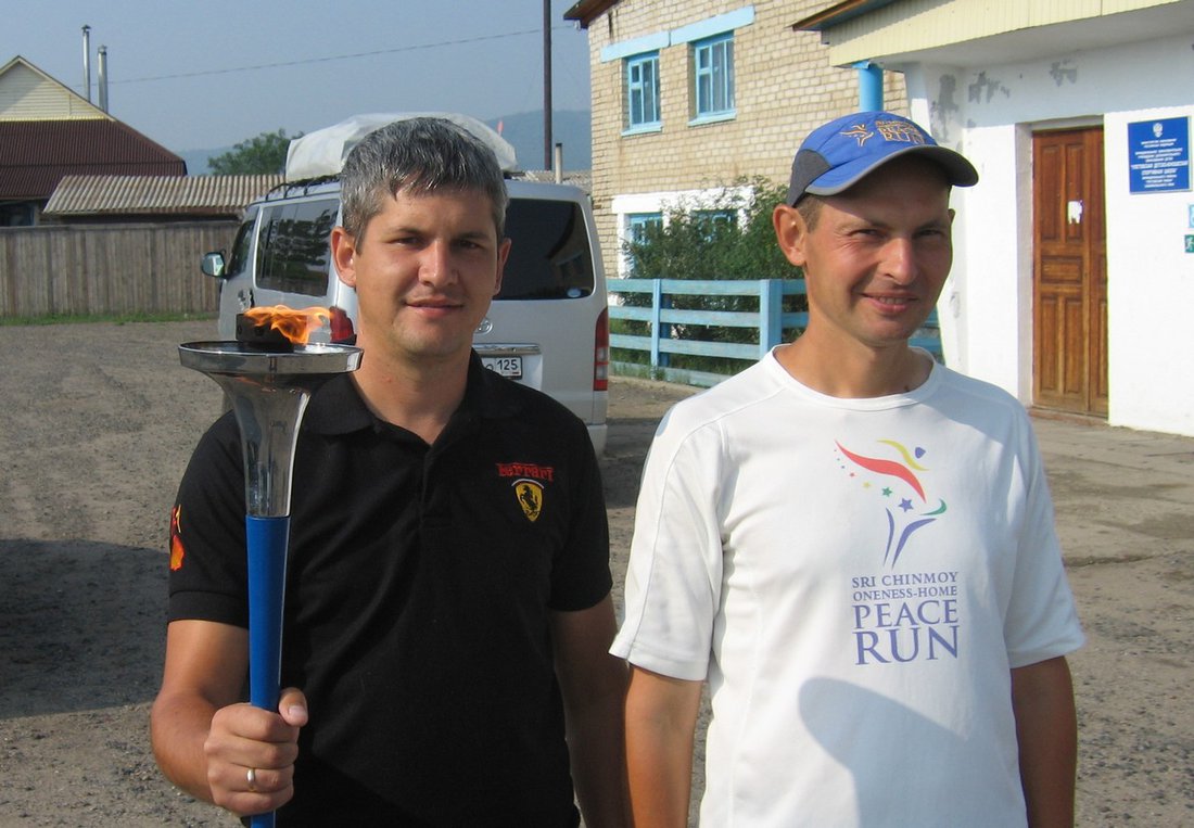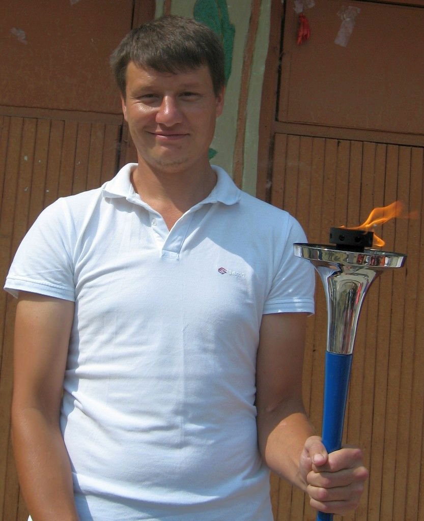 С факелом Мира тренер по легкой атлетике Кузьмин В.А.