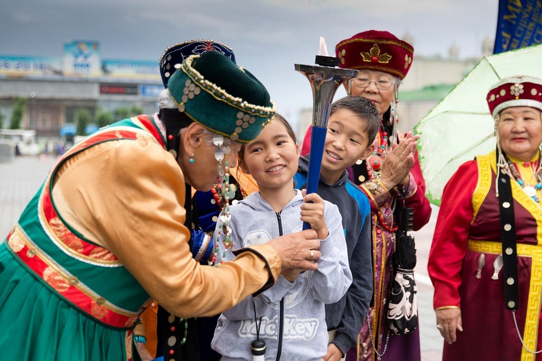 С факелом Хамаганов Батор Петрович, консультант отдела развития массового спорта министерства спорта и молодежной политики республики Бурятия