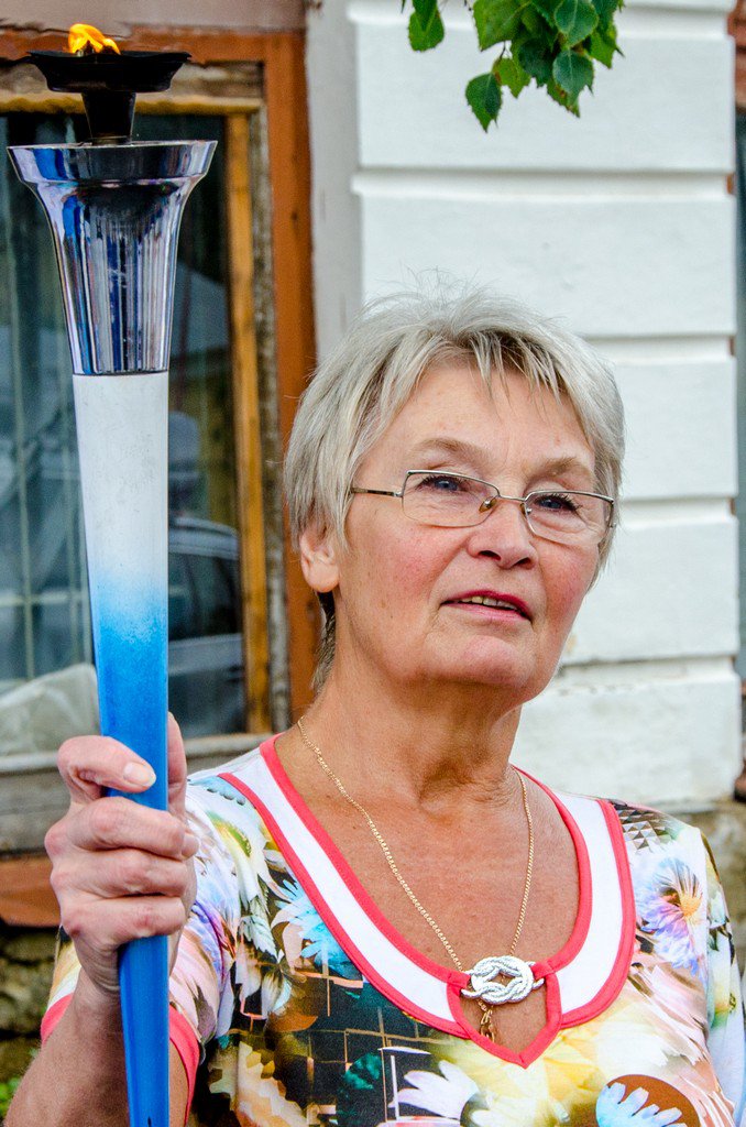 С факелом Васина Тамара Кирилловна, ведущий специалист по социальным вопросам администрации Новоладожского городского поселения