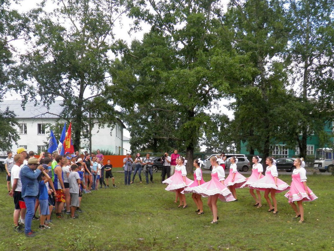 Roman Shevchuk, vice-head of Nizhneudinskiy district administration, is welcoming the runners