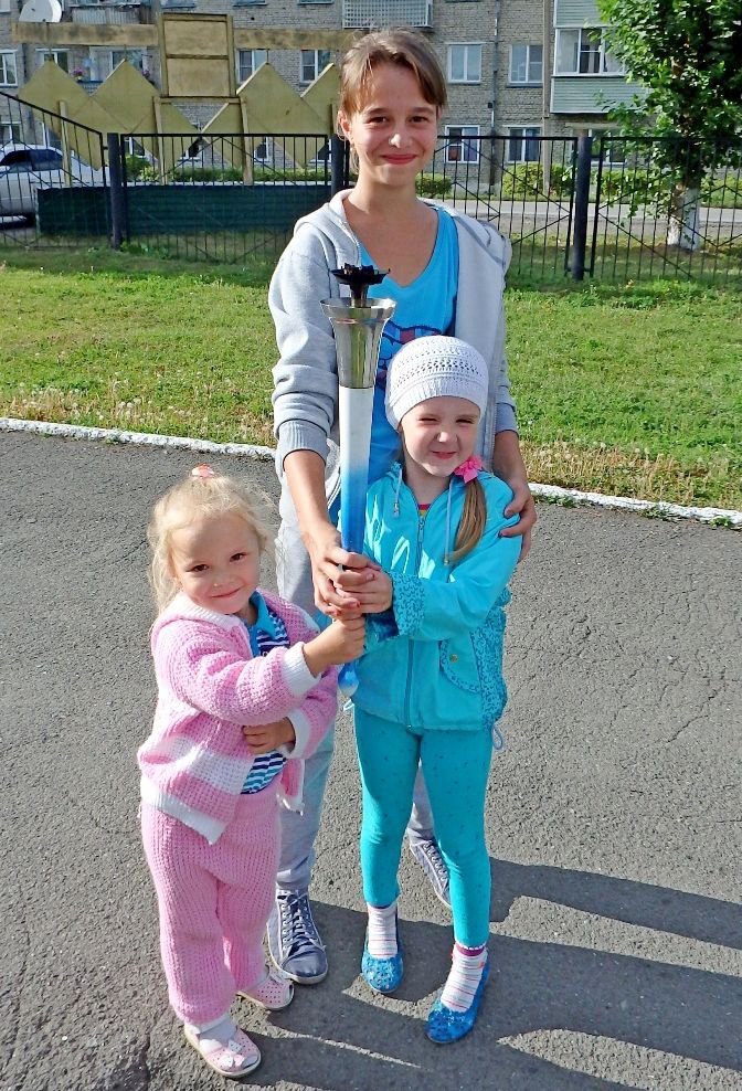 Маленькие жители Барабинска с удовольствием и крепко сжимают факел Мира в своих ладошках