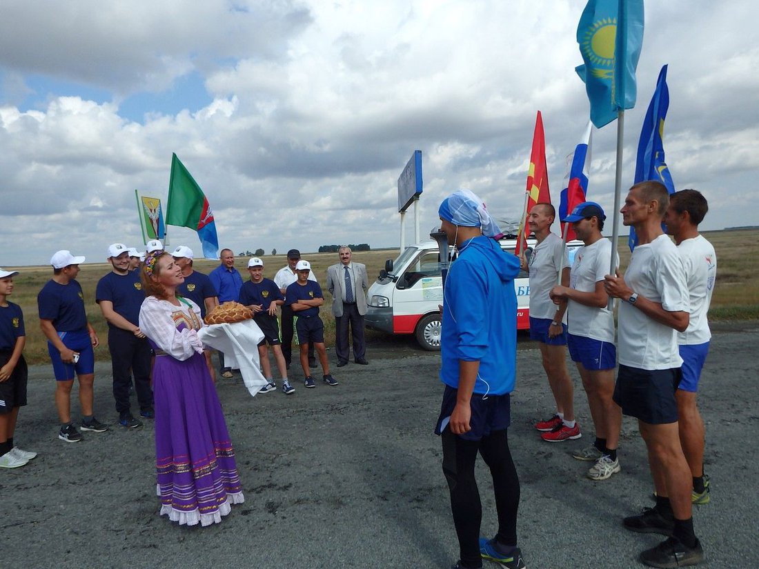 All of the Tselinniy district administration came to see the Peace Run off