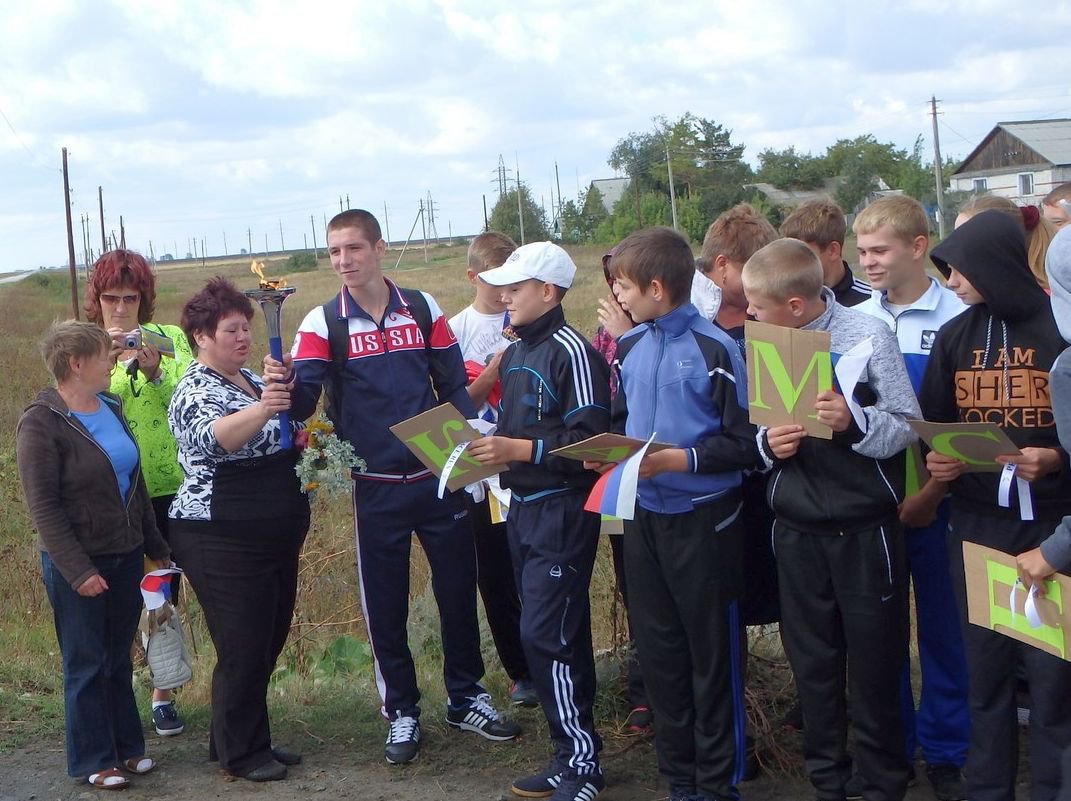 Вся администрация Целинного района вышла проводить Факел Мира в путь