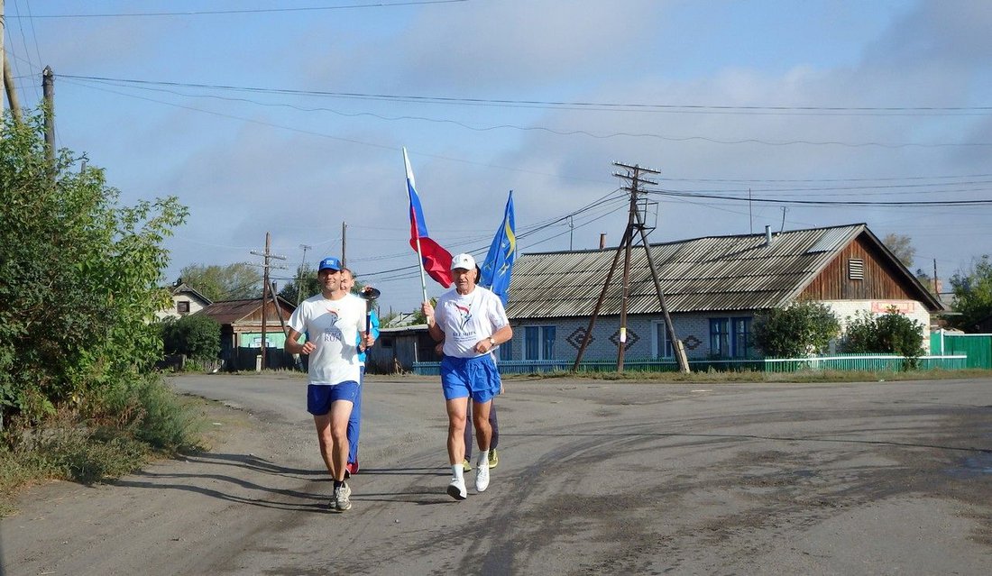All of the Tselinniy district administration came to see the Peace Run off