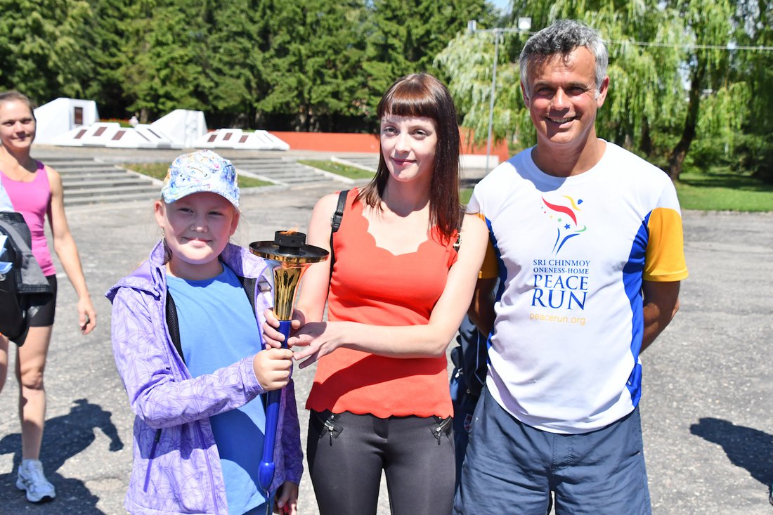 Irina is a wonderful runner! She helped us to carry the torch last 11 km to the border!