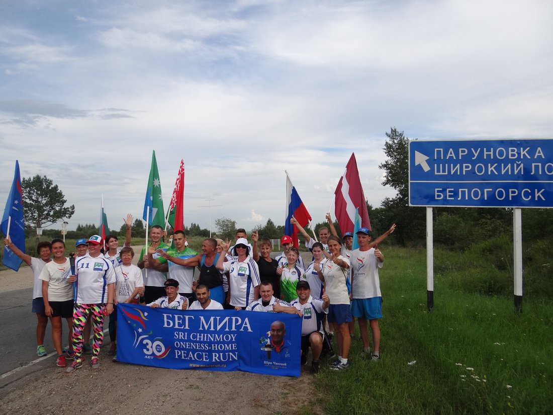 The torch has travelled 164.0 km from Шимановск to "Белогорка".