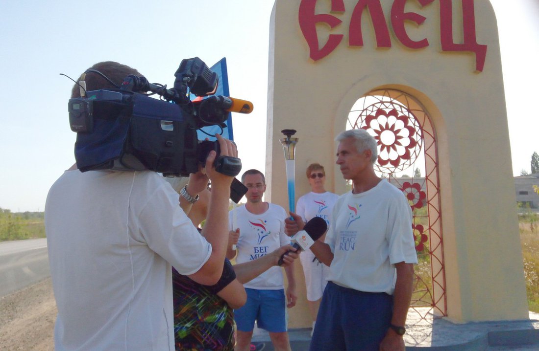 С хлебом-солью факельную эстафету « Бег Мира» встречают жители г.Лебедянь
