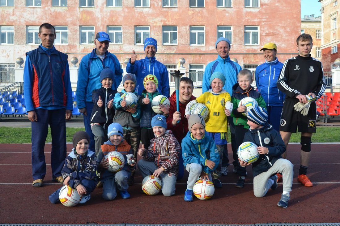 Head-trainer of the children's FC "Star" Evgeny Alexandrovich Gorelkin and his students joined the relay