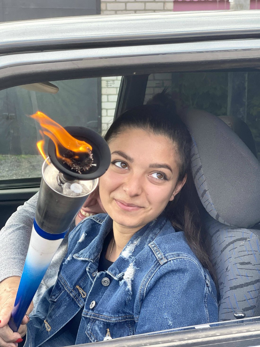С факелом:слева - Миночкина Анастасия Владимировна, справа - Курбатова Елена Михайловна, преподаватели Красноярского государственного техникума