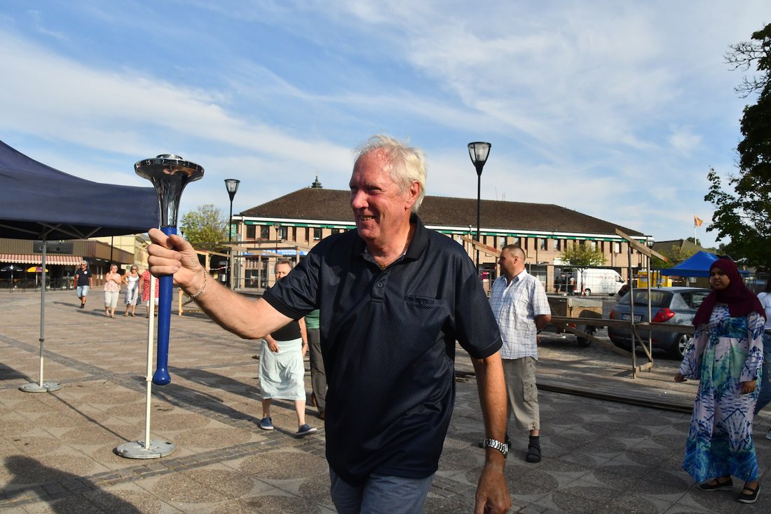 Each year an Ambassador is elected for the city. The newly elected Ambassador (left) holds the torch with Åsa.