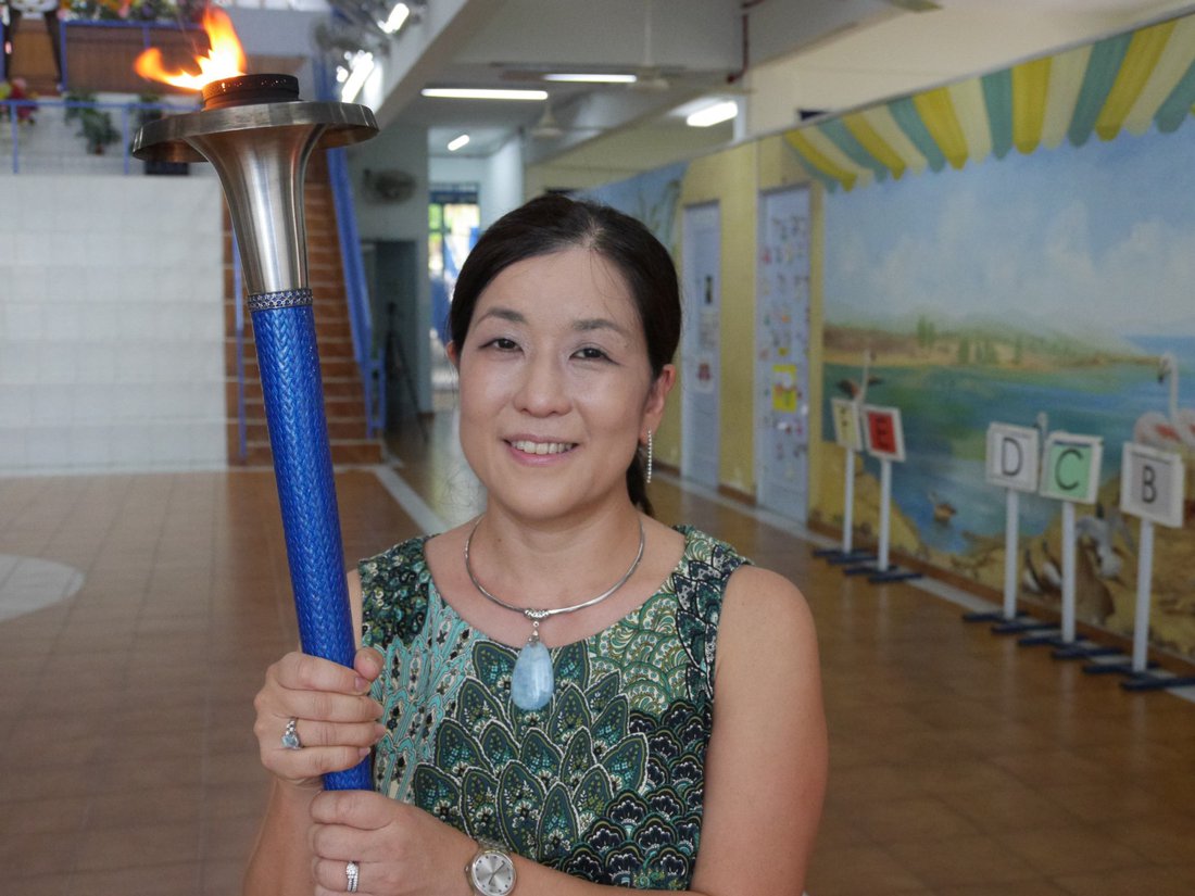 The teachers eagerly held the peace torch, they were so thrilled by the experience.