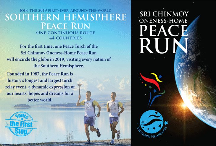In 2019, for the first time, the Sri Chinmoy Oneness-Home Peace Run encircled the entire globe in a calendar year, bringing the Peace Torch to every country of the Southern Hemisphere.