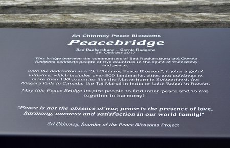 Most med Gornjo Radgono in Bad Radkersburgom se je tako tudi uradno pridružil projektu “Cvetovi miru Šri Činmoja”. Zdaj, ko je posvečen miru, nas ta most opominja na našo dožnost in odgovornost, da kot velika svetovna družina ustvarjamo mir in harmonijo tudi v našem življenju...