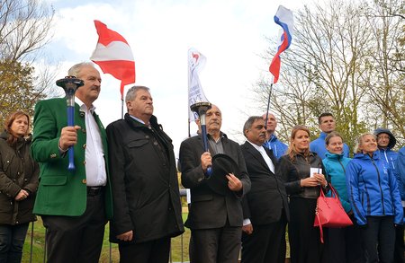 ...župan Josef Doupona iz občine Klöch priteče s plamenico iz avstrijske strani mostu...