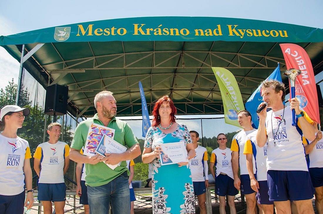 Zástupca primátora pán Pagáč nedrží mierovú pochodeň prvý raz... Krásno nad Kysucou nás privítalo už niekoľkokrát
