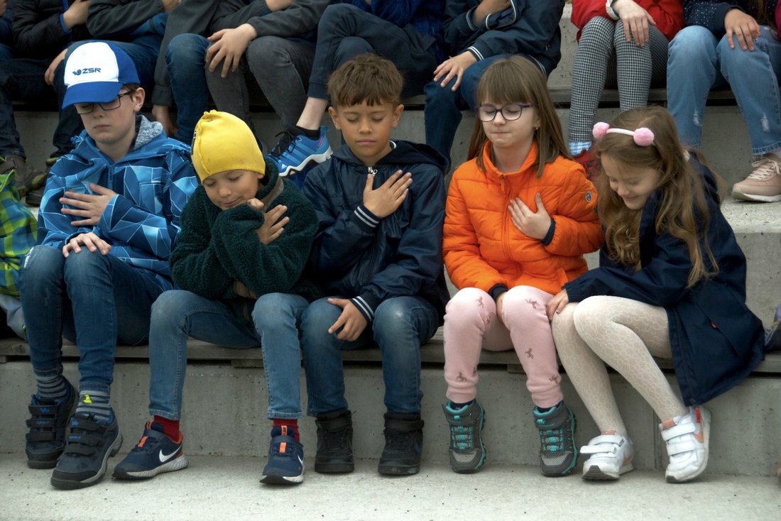 Deň sme začali na Základnej škole na Drieňovej ulici v Ružinove. Stretli sme sa s prvým stupňom v ich športovom areáli.