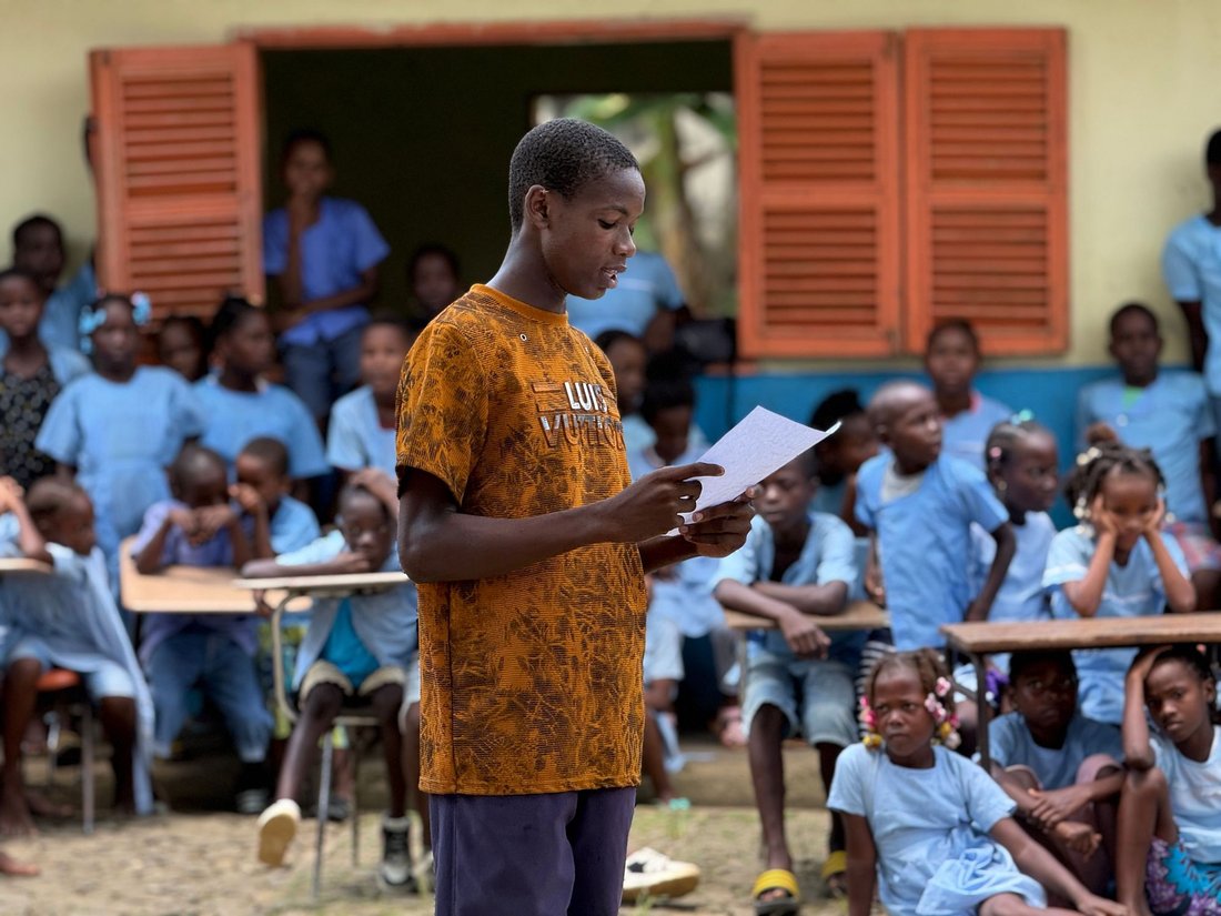 Um dos alunos leu-nos um poema muito bonito sobre a paz.