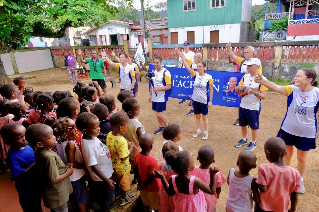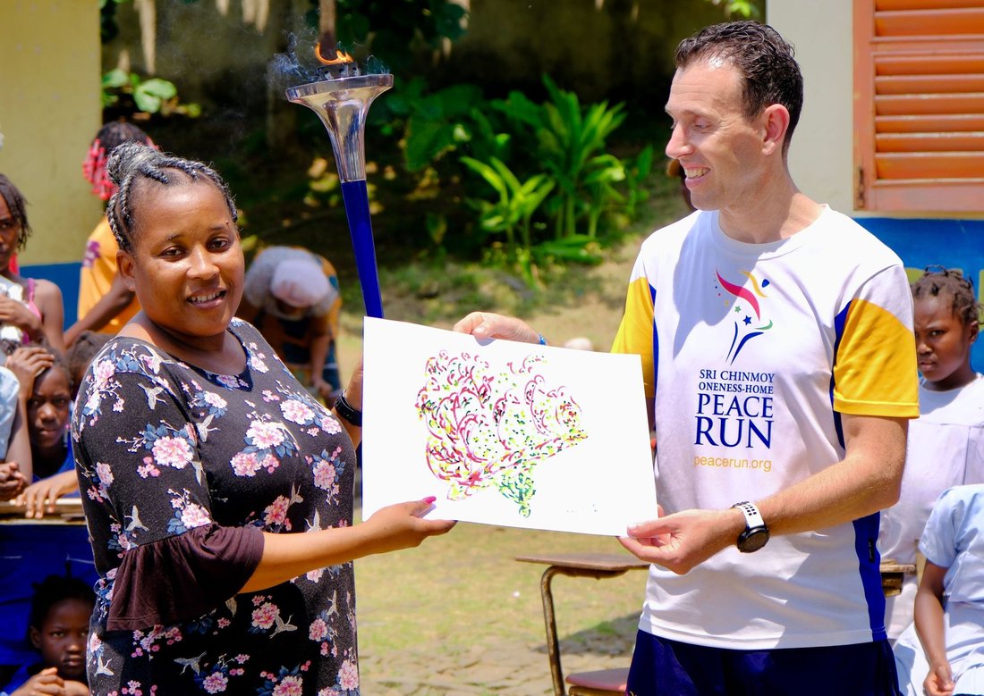 A Peace Run certificate and a Jharna-Kala painting by Sri Chinmoy as a way to thank this wonderful little school.