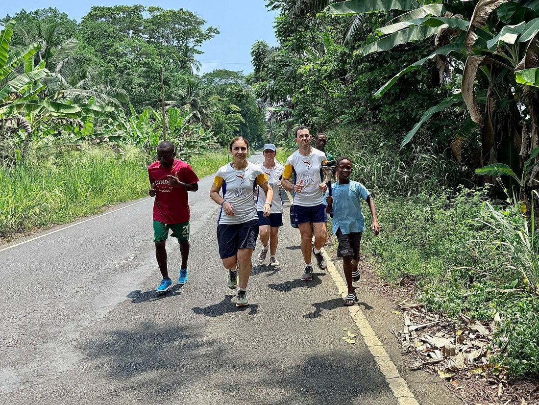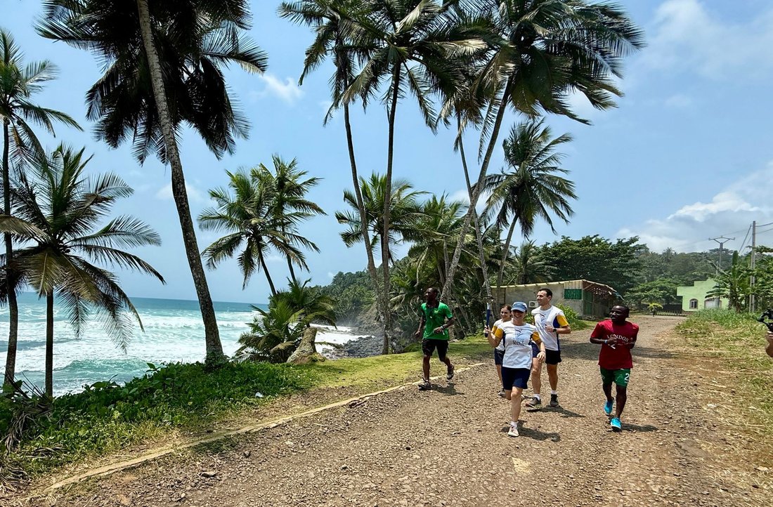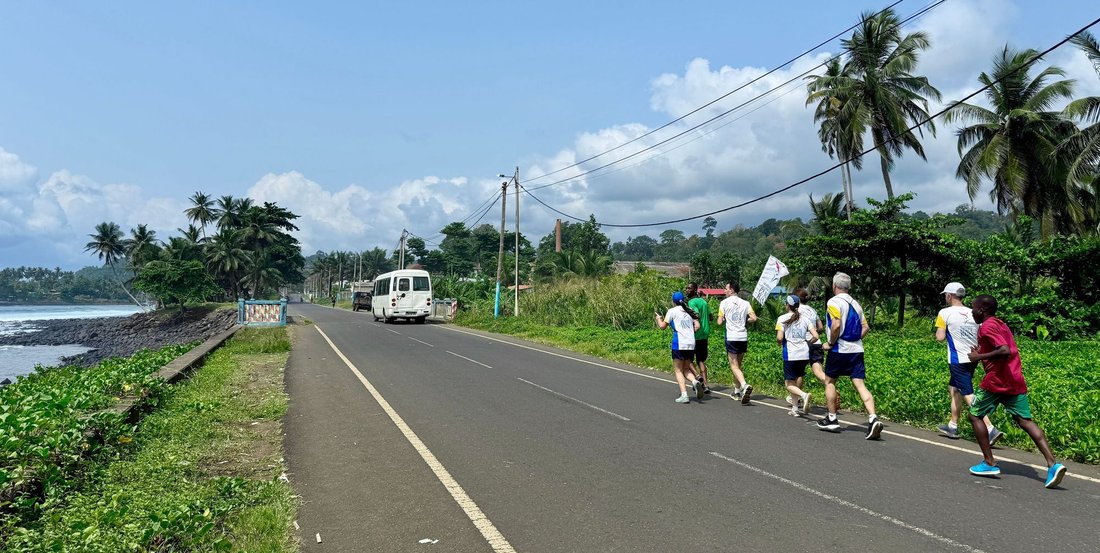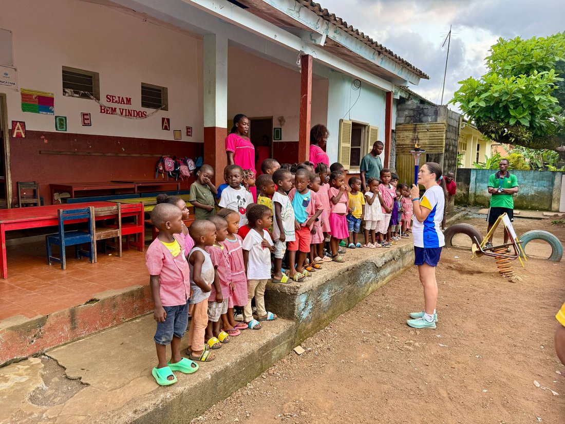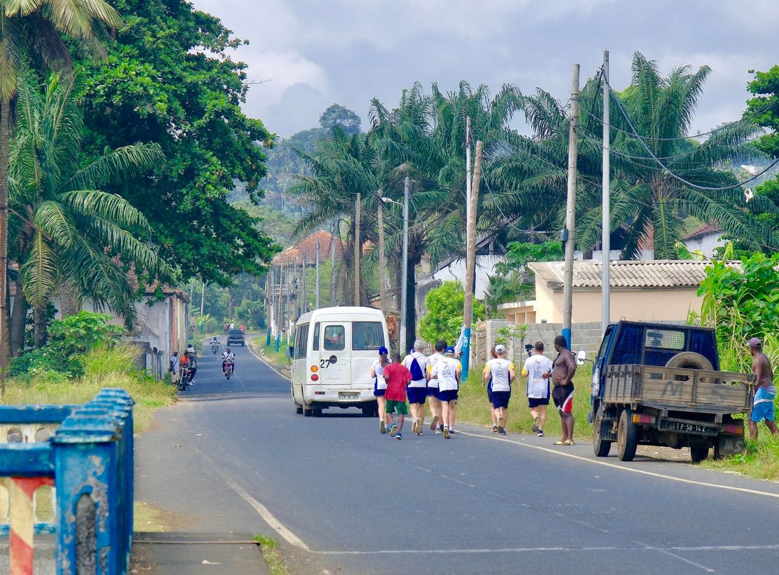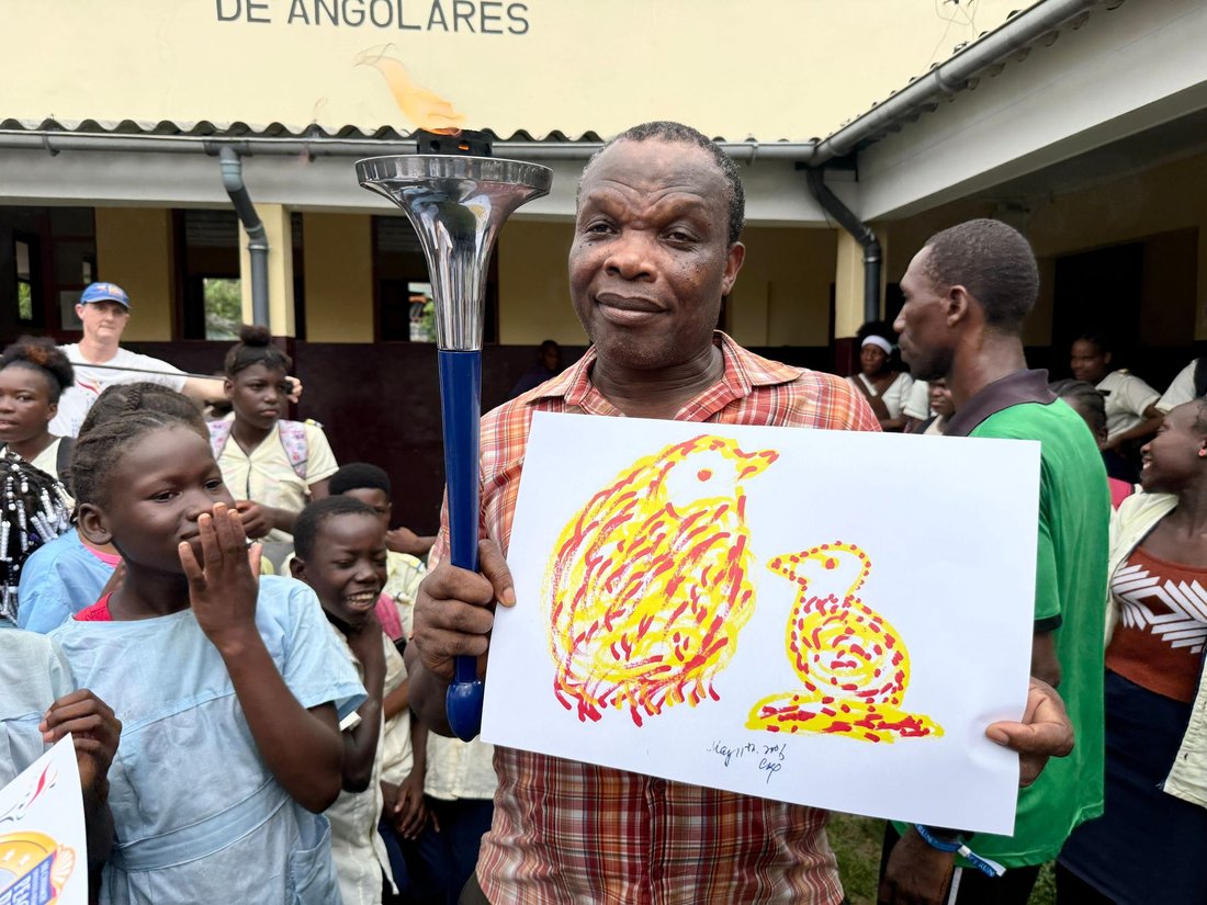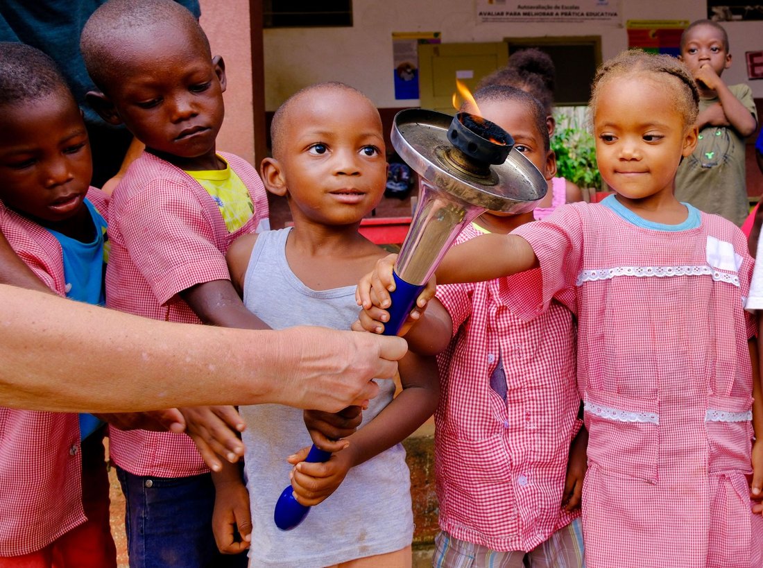 The torch has travelled 10.0 km from Àgua Izé to Angolares.