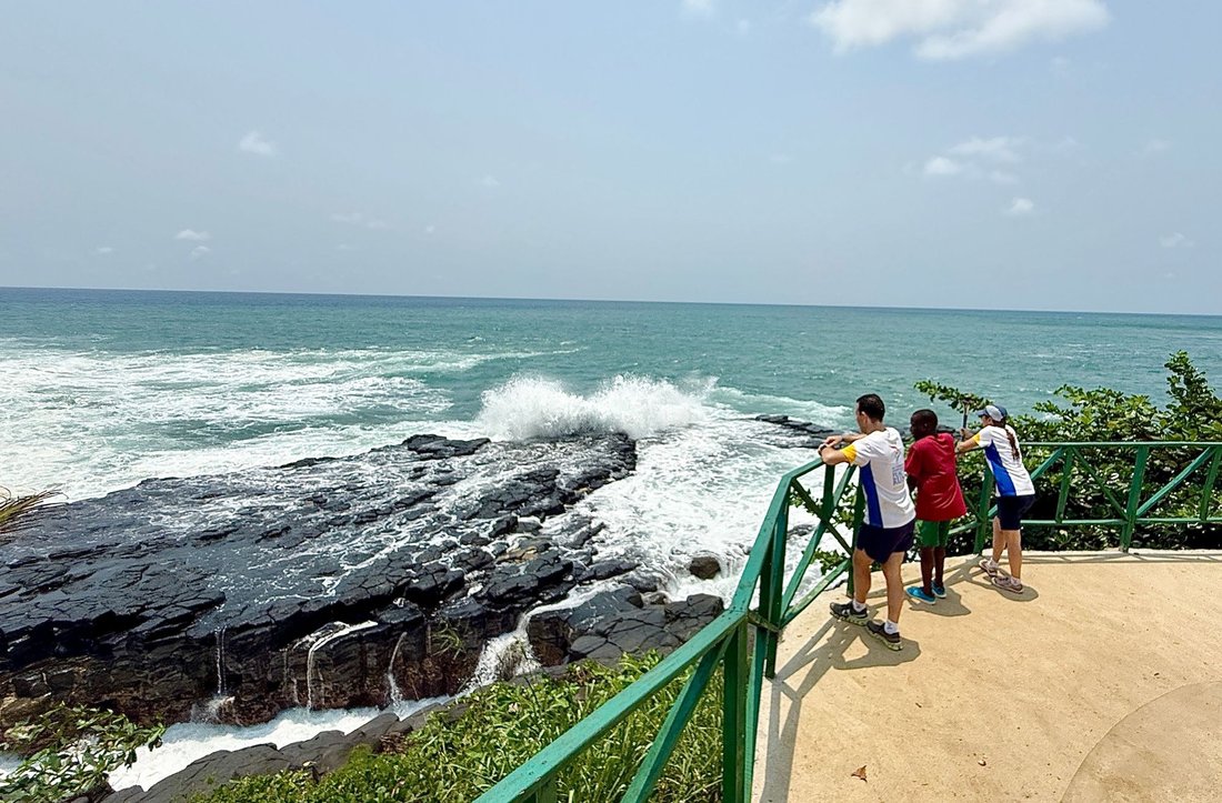 We arrived at Boca de Inferno. For the people of São Tomé, this place is much more than geology... Legend has it that a knight once decided to challenge the sea. The “breath” of water and the deafening noise we hear is not just the force of the waves, but the soul of the knight and his horse passing between two places, São Tomé and Cascais, Portugal.