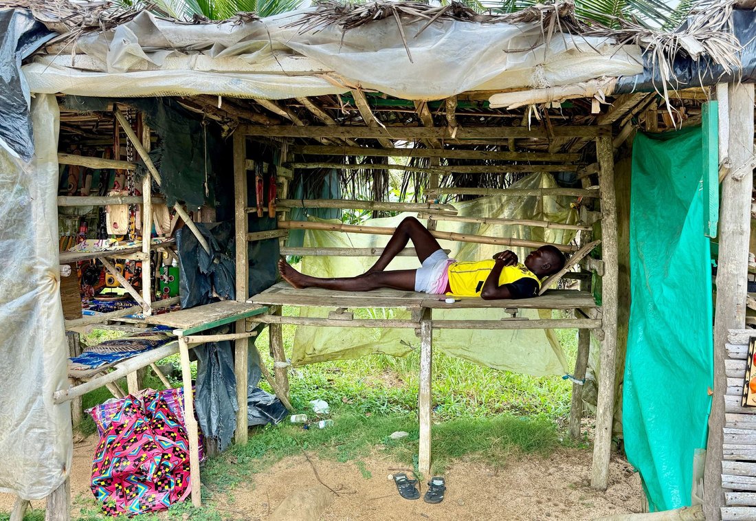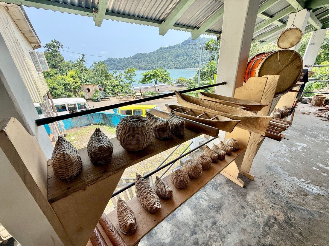 At the Boca do Inferno square, there were several stalls selling handcrafted products made from São Tomé's local woods.