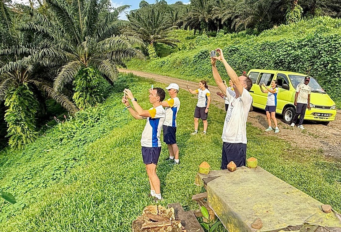 Continuámos a nossa viagem, e passámos pelos grandes campos de palmeiras.
