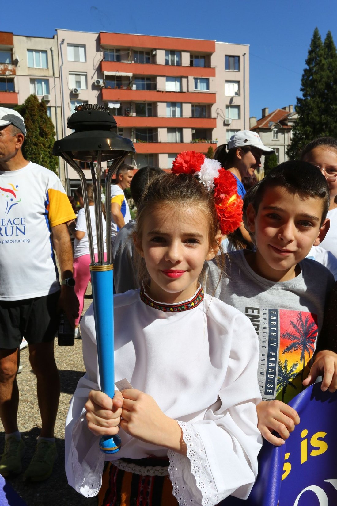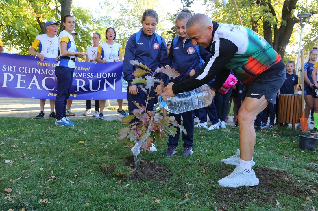 In Kostenets, we were welcomed by sports clubs, students, residents and the mayor of the municipality - Mr. Yordan Angelov. This was followed by the planting of a "peace tree", in which children and Mr. Angelov participated. A sign with an inspiring aphorism was placed in front of the tree to remind the message of peace.