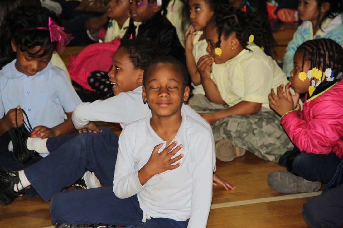 Our first school of the day was at a school complex called Girard College. It combines elementary and high school educational facilities in a large and beautiful campus. The auditorium was packed with enthusiastic peace-loving children.