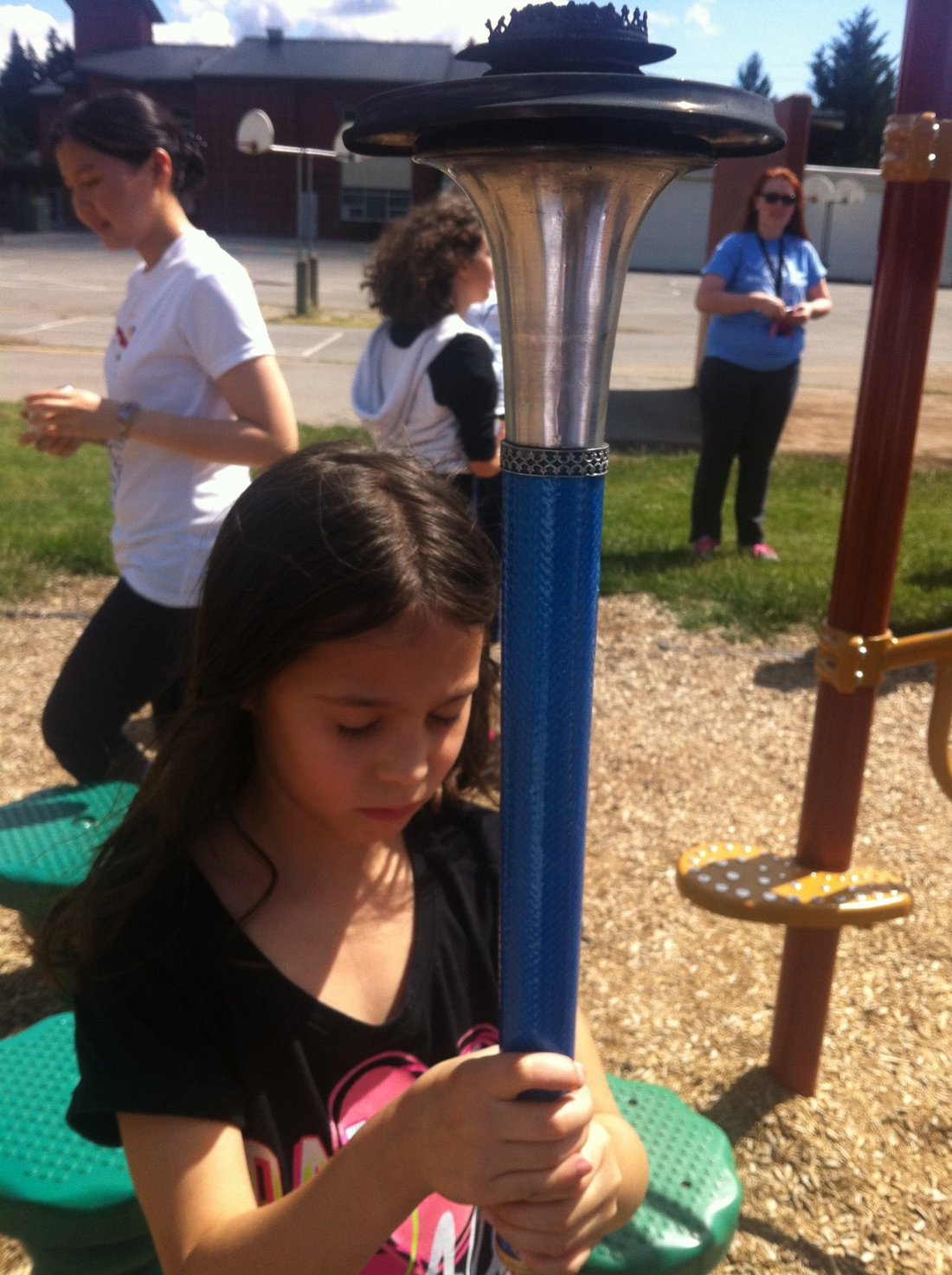 The torch bearer leads the way as other children follow waiting for their turn to carry this inspiring symbol of peace.