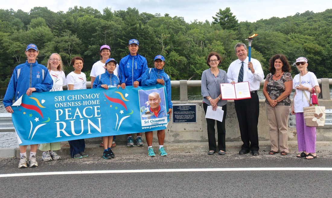 Bob Johnson, Councilman of Exeter, presented a Proclamation to the Peace Run congratulating and honoring Sri Chinmoy and the Peace Run for its 27th Anniversary and renewing the dedication of this Beach Pond Causeway as a Sri Chinmoy Peace-Blossom.