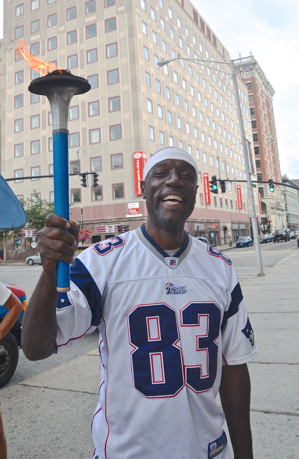 These two gentlemen from a local radio station just happened to pass by and asked to hold the torch and get some information for their station.